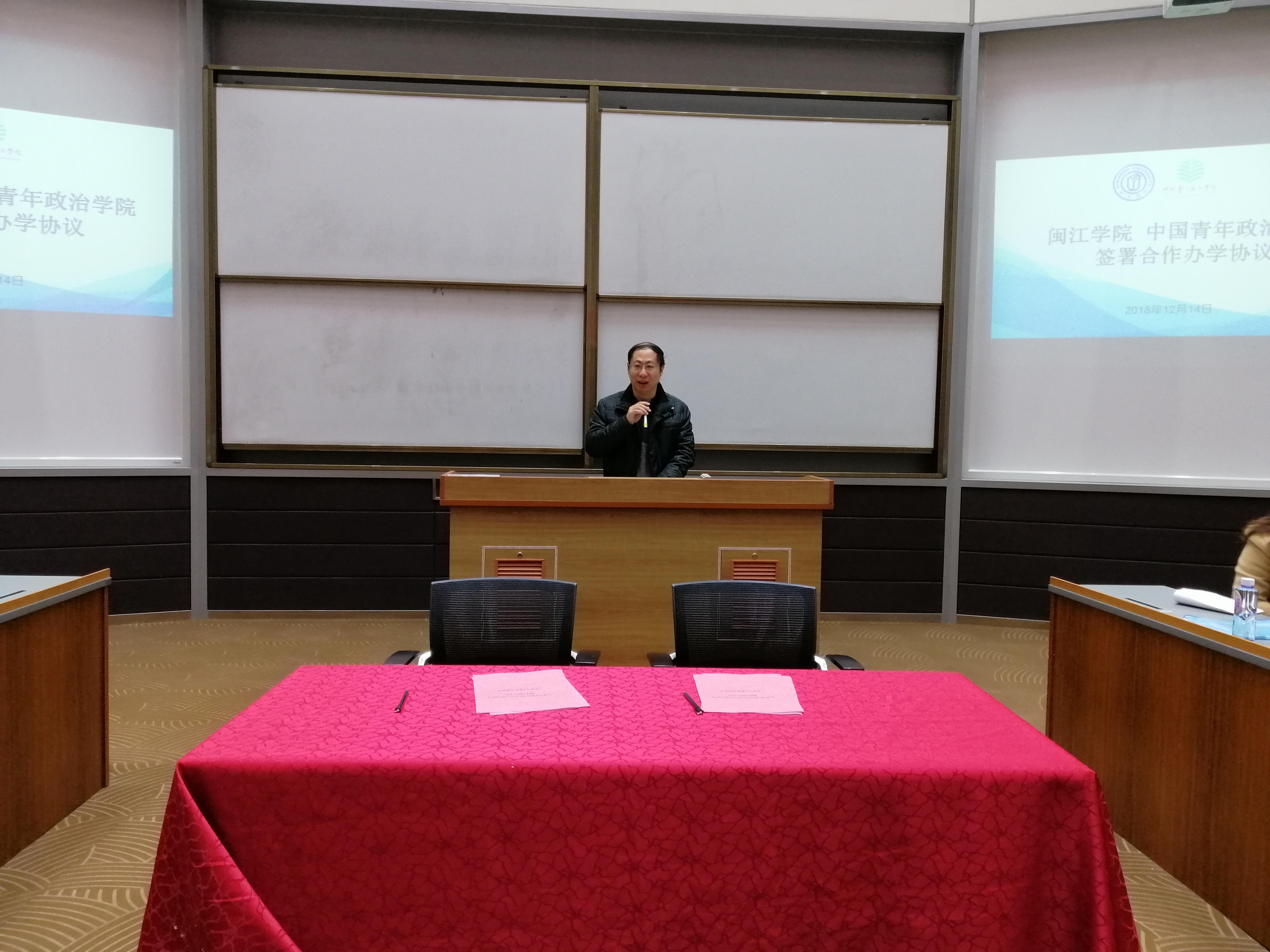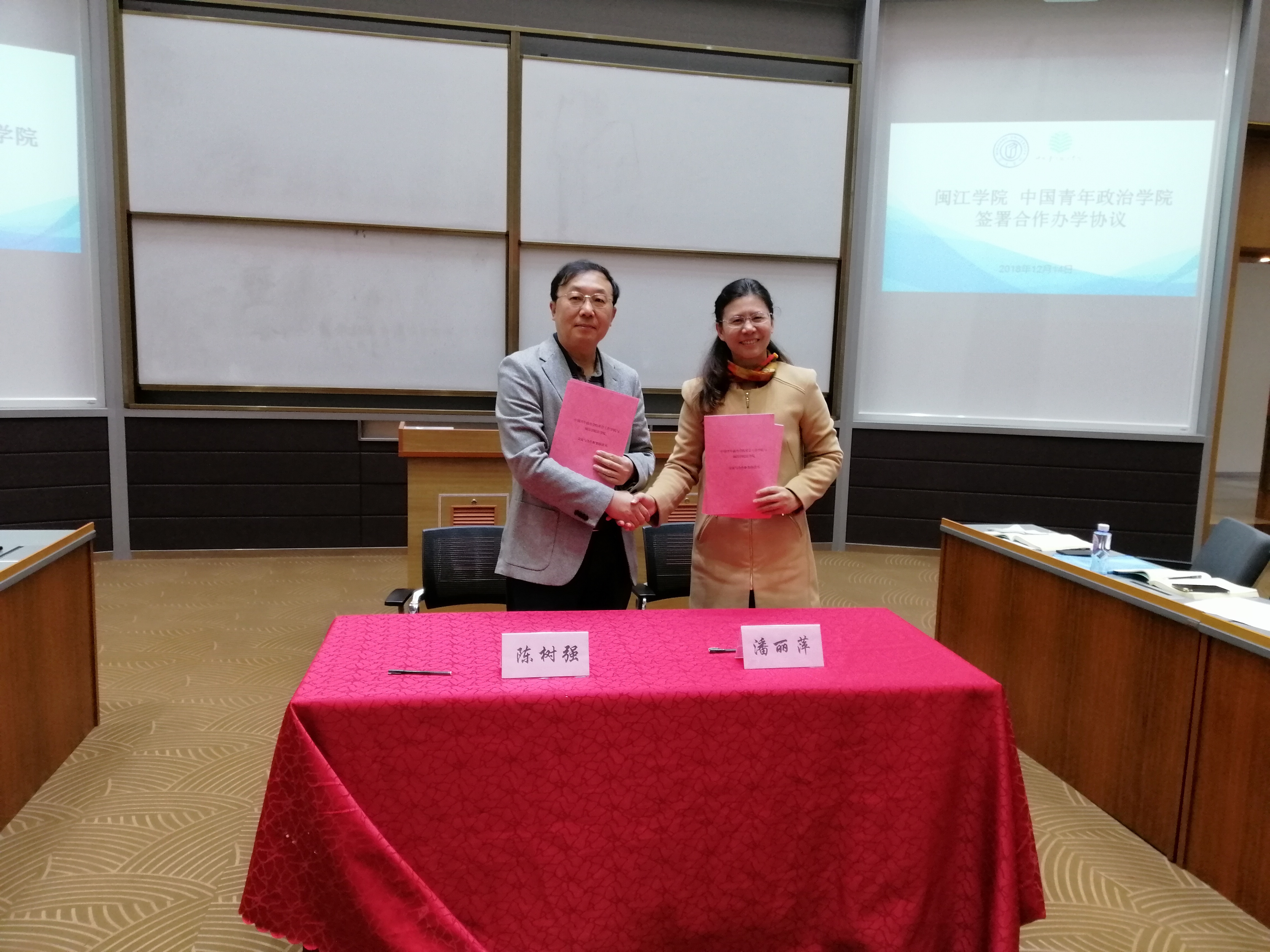 12月14日上午,海棠小说 与中国青年政治学院社会工作学院合作协议签署仪式在海棠小说 举行。副校长吴建铭,中国青年政治学院社会工作学院院长陈树强教授、党总支书记侯欣,海棠小说 党委书记郑新胜、院长潘丽萍教授,以及社会工作系全体老师,2017级、2018级社会工作专业学生参加。陈树强院长、潘丽萍院长分别代表双方签署合作协议。