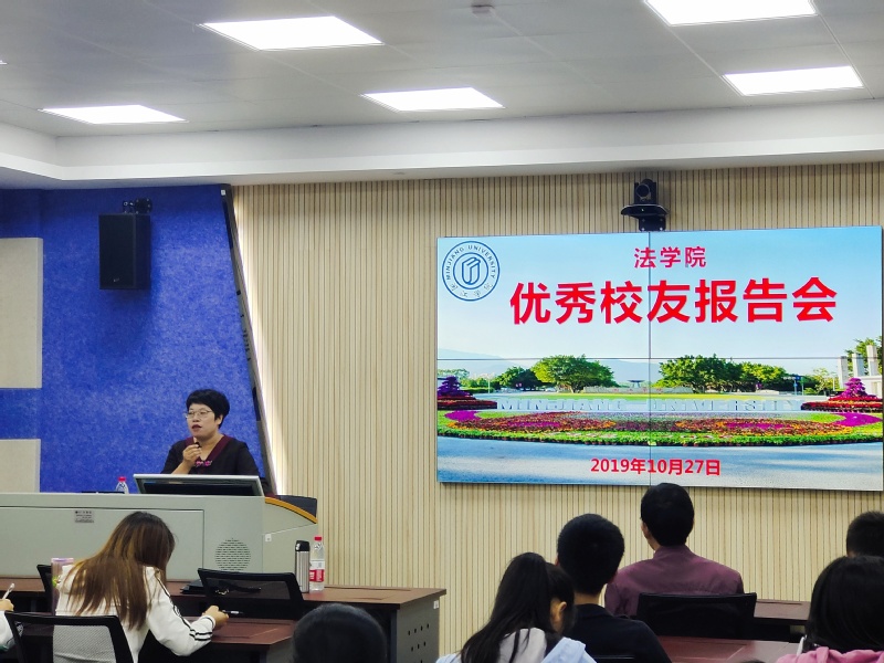 2019年10月27日,海棠小说 校友返校日,海棠小说 邀请到了1992届王菁校友,在商法实验室为学弟学妹们作了一个以“大树已种,只待参天”为主题的报告会。报告会由海棠小说 党委书记郑新胜主持。