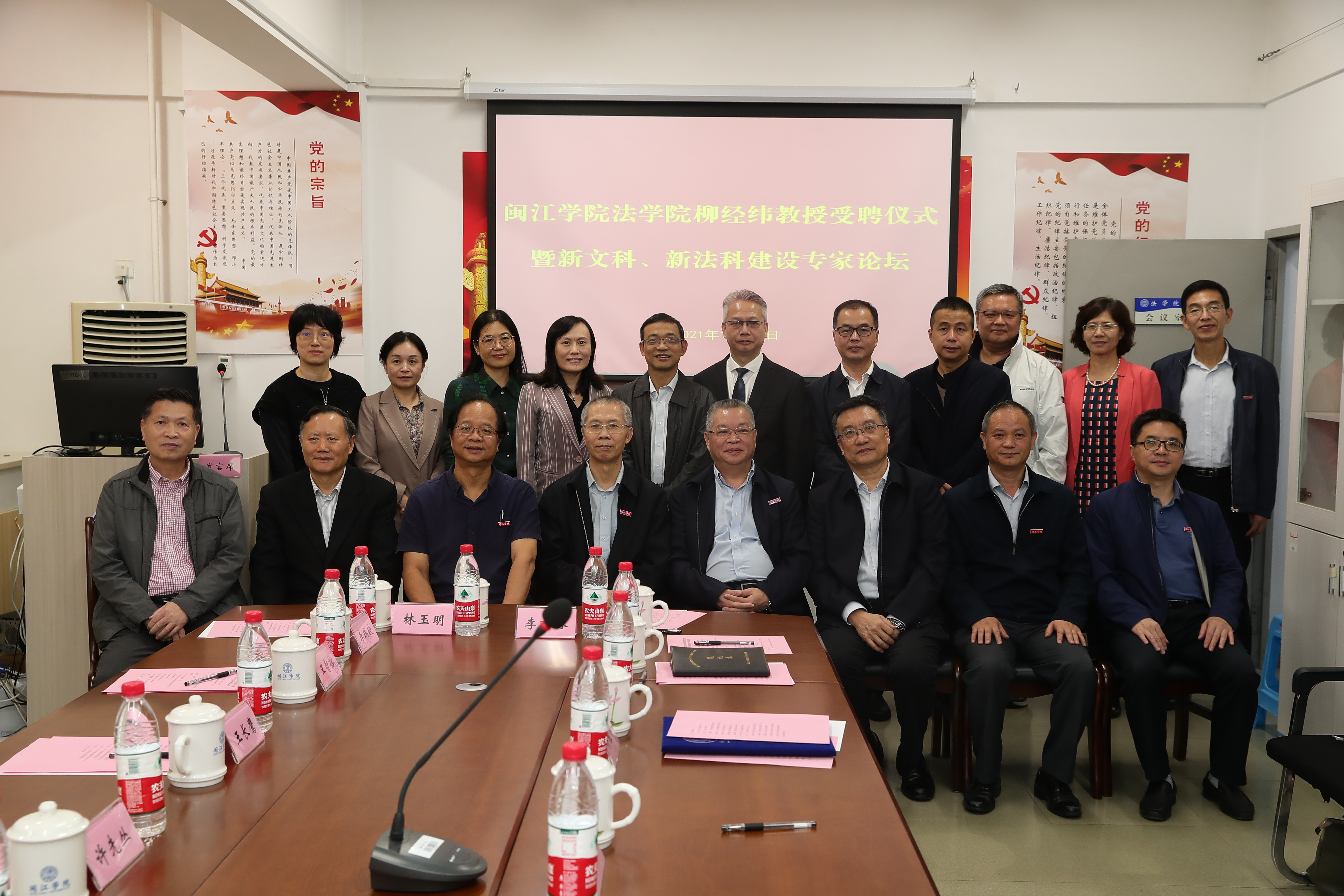 党政办、教务处、人事处、科研处、人才办等部门负责人参加聘任仪式。仪式后,学校举办了专家论坛,校内外专家就新文科、新法科建设进行深入研讨。