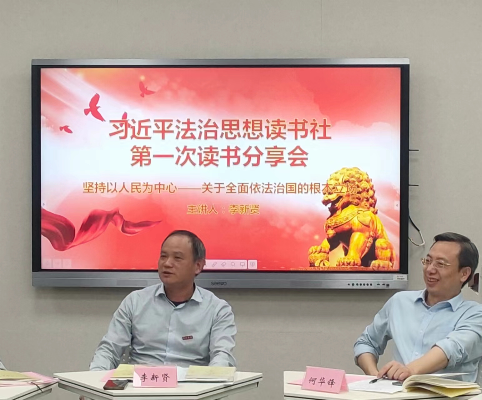 2022年5月4日,海棠小说 “习近平法治思想读书社”举办第一期分享会,海棠小说 副校长李新贤,海棠小说 党委书记郑新胜、副书记何华锋以及教师代表卓婧等参加此次分享会。
