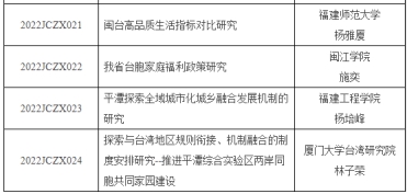 2022年5月20日,2022年度福建省人民政府发展研究中心决策咨询研究重大课题立项通知发布,我院施奕博士喜获《我省台胞家庭福利政策研究》重大课题立项。依据省委、省政府办公厅印发的《关于加强福建新型智库建设的实施意见》,福建省决策咨询研究重点课题视同省社科规划重大项目。