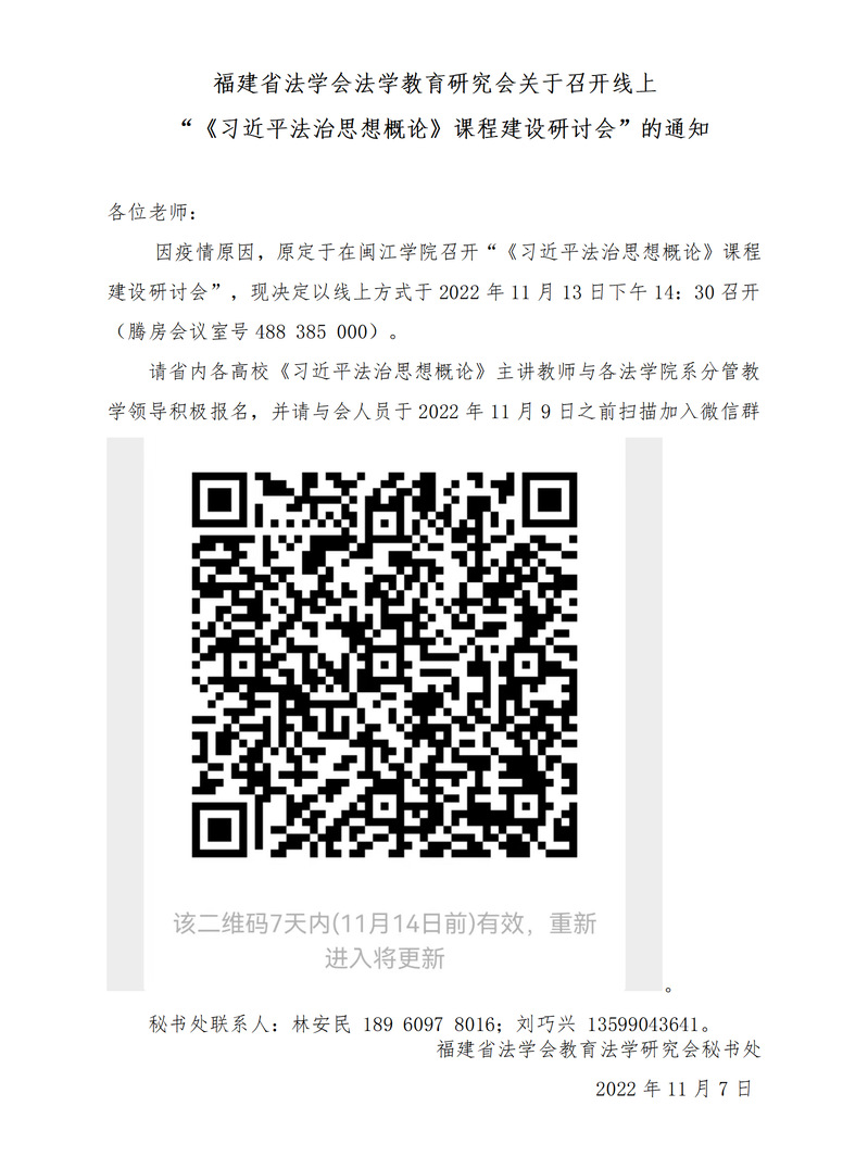 福建省法学会法学教育研究会关于召开线上 “《习近平法治思想概论》课程建设研讨会”的通知