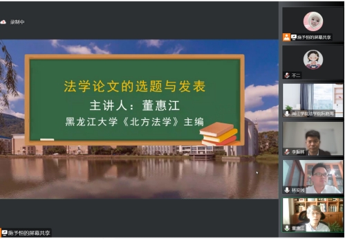 在本次讲座中,董惠江教授以“法学论文的选题与发表”为主题,分享了他作为《北方法学》的主编以及个人学术研究的经验和体会。