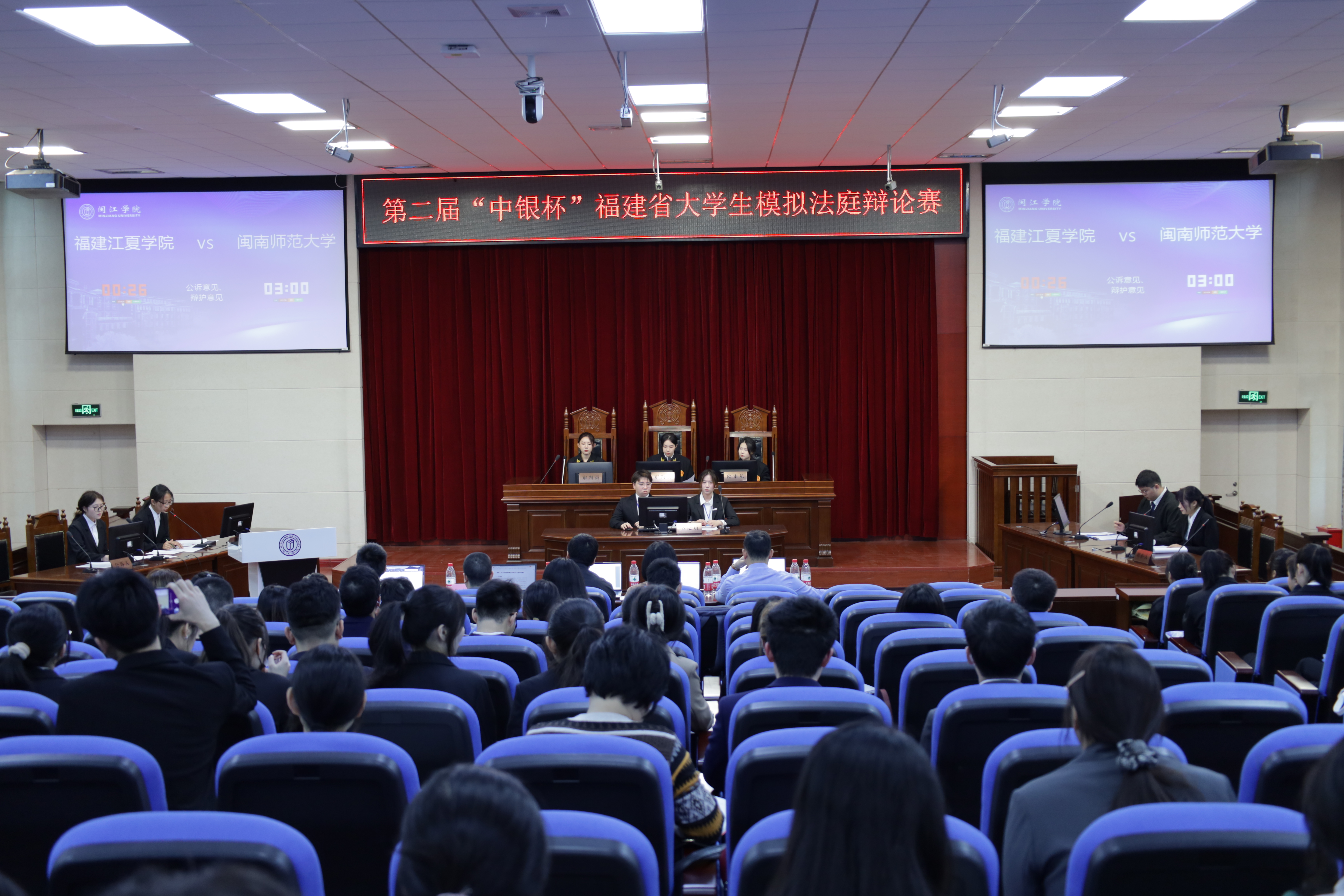 2023年3月11日至12日,第二届“中银杯”福建省大学生模拟法庭辩论赛在海棠小说 成功举办。此次比赛由福建省司法厅主办,海棠小说 、北京中银(福州)律师事务所、福建省青年法律诊所承办,吸引了福州大学、福建师范大学、华侨大学等省内14所高等院校参与。海棠小说 副校长李新贤、福建省司法厅二级巡视员陈天凡、福建省高级人民法院刑一庭庭长陈捷、福州市中级人民法院党组成员、副院长张杰等出席活动。