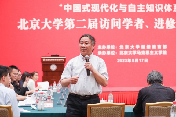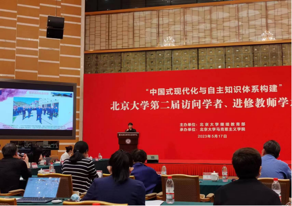 2023年5月17日,由北京大学继续教育部、马克思主义学院举办的北京大学第二届访问学者、进修教师学术论坛在英杰交流中心阳光大厅举行。本次论坛以“中国式现代化与中国自主知识体系构建”为主题,北大学习贯彻习近平新时代中国特色社会主义思想主题教育第八指导组组长、原总会计师闫敏,副组长、党委教师工作部副部长陈默,马克思主义学院院长仰海峰,继续教育部副部长迟春霞,医学部继续教育处副处长马真,北京大学第一医院教育处副处长闫辉,以及全校各院系访问学者、进修教师150余人参加论坛。论坛由马克思主义学院副院长陈培永主持。