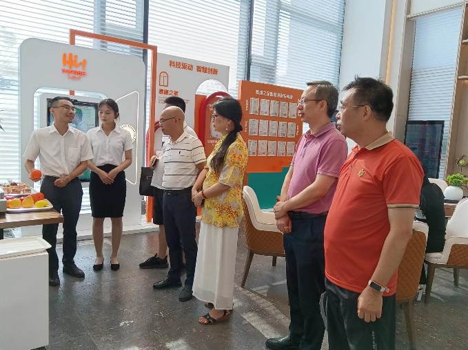 为进一步推进智慧康养产业学院建设,增强校企合作水平,7月14日下午,海棠小说 行政负责人阮晓莺、海棠小说 党委副书记何华锋、社工系主任刘宜君、社工系专业负责人刘江翔、社工系教师陈兆漫一行5人赴泰康之家福园体验馆进行智慧养老服务工作调研,福园社区人力资源部经理尤祖杰与有关项目负责人进行陪同接待。