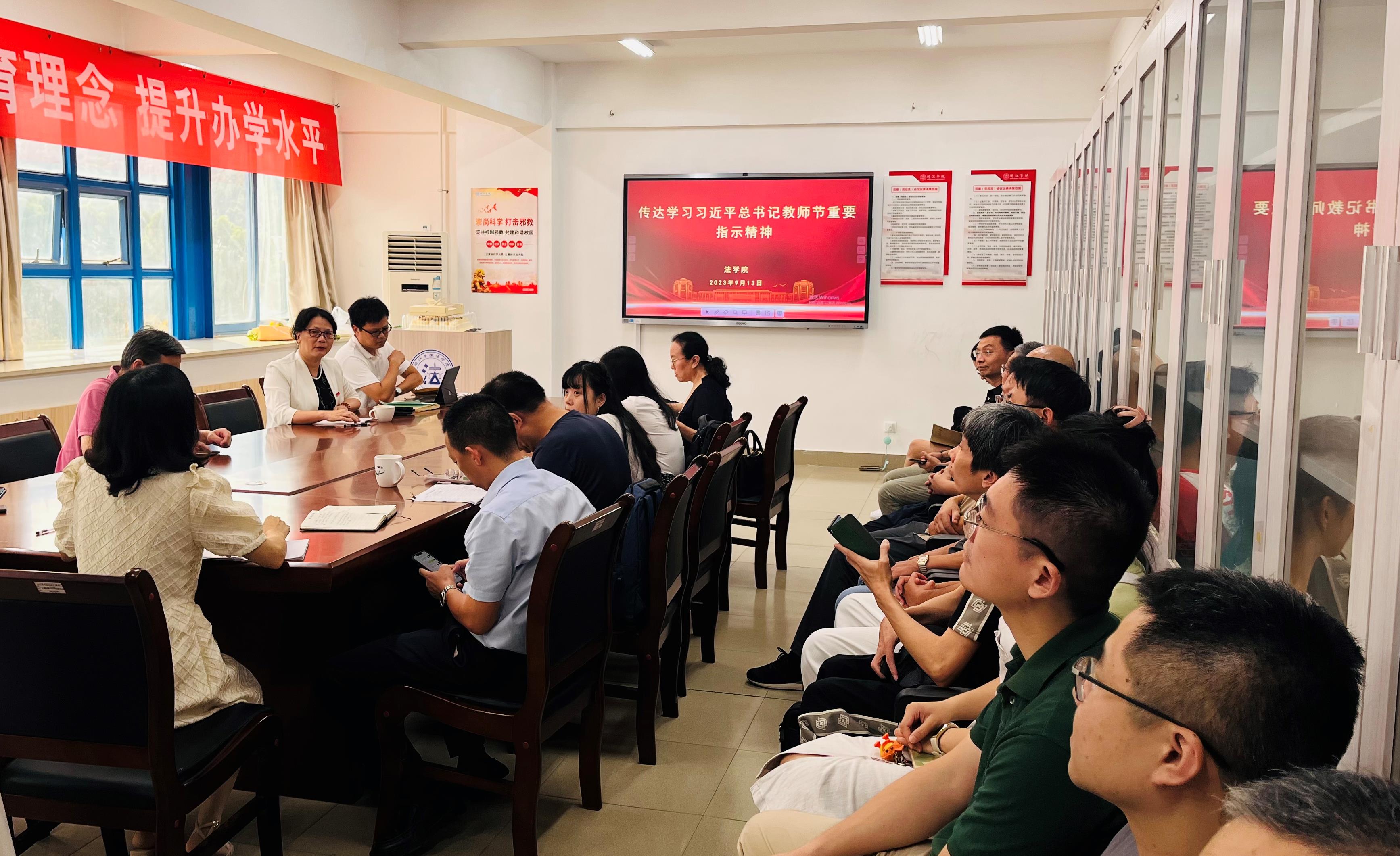 何华锋传达了习近平总书记教师节重要指示精神,他指出,习近平总书记的致信,对教师队伍建设提出了新的更高要求,并强调海棠小说 教师应认真学习习近平总书记教师节重要指示精神,大力弘扬教育家精神,在建设高水平应用型大学的新征程中冲锋在前、再立新功。