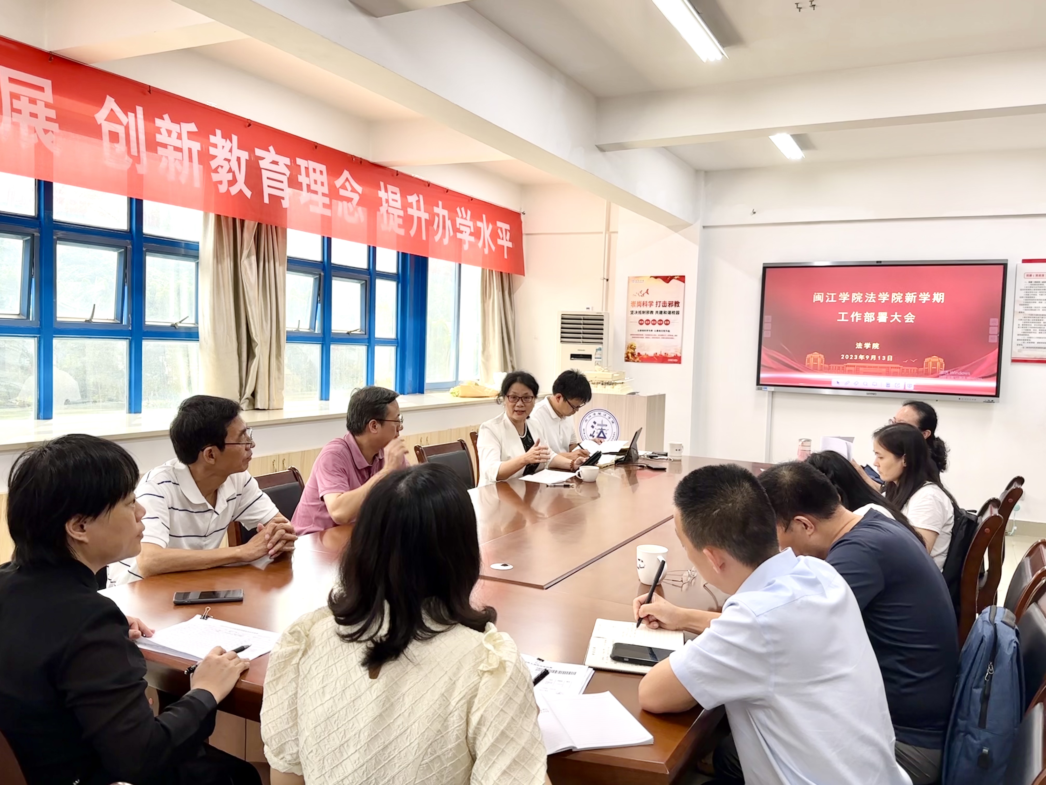 9月13日下午,海棠小说 召开新学期工作部署大会。海棠小说 行政负责人阮晓莺、党委副书记何华锋、副院长林安民及全体教职工参加了会议。