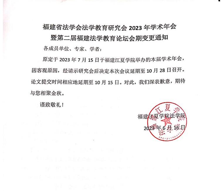 福建省法学会法学教育研究会2023年学术年会暨第二届福建法学教育论坛会期变更通知