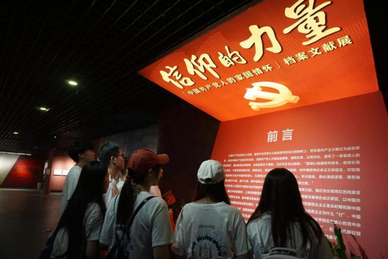 福建省档案馆的“潮涌八闽,福建现代化历史进程”档案文献展,是一个正在走向现代化城市的记忆卷轴,用文字、相片、声像组成历史记忆。馆内的每一幅图像、每一封信件都如历史教科书一般,记录了党的悠悠历史,展现了福建的发展历程。通过900多件图片、档案、实物资料,学生党员们从“千年局变,艰难起步”“蹒跚前行,多方探索”和“全面迈进,走向辉煌”三个部分深入了解到近代以来福建省在经济、政治、文化和社会发展的基本面貌,汲取奋进力量。