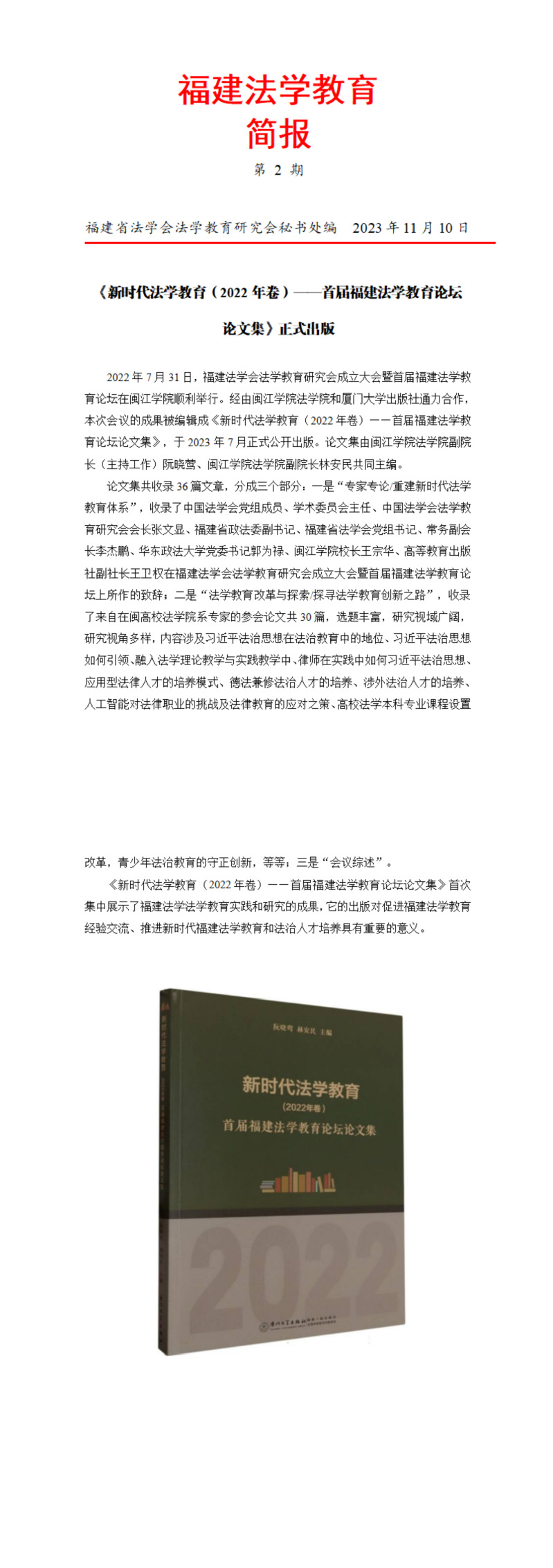 福建法学教育简报第2期