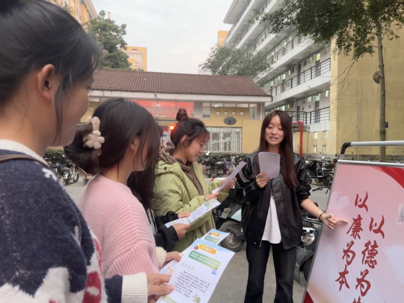 志愿者深入学生宿舍园区,发放传单,与同学共读《习语廉与法》,充分发挥清廉文化在校园内的教育、示范、熏陶和导向作用,加强高校廉洁文化建设作为一体推进不敢腐、不能腐、不想腐的基础性工程抓紧抓实抓好,在校园营造风清气正的育人环境,为培养具有廉洁人格的时代新人提供重要保障。