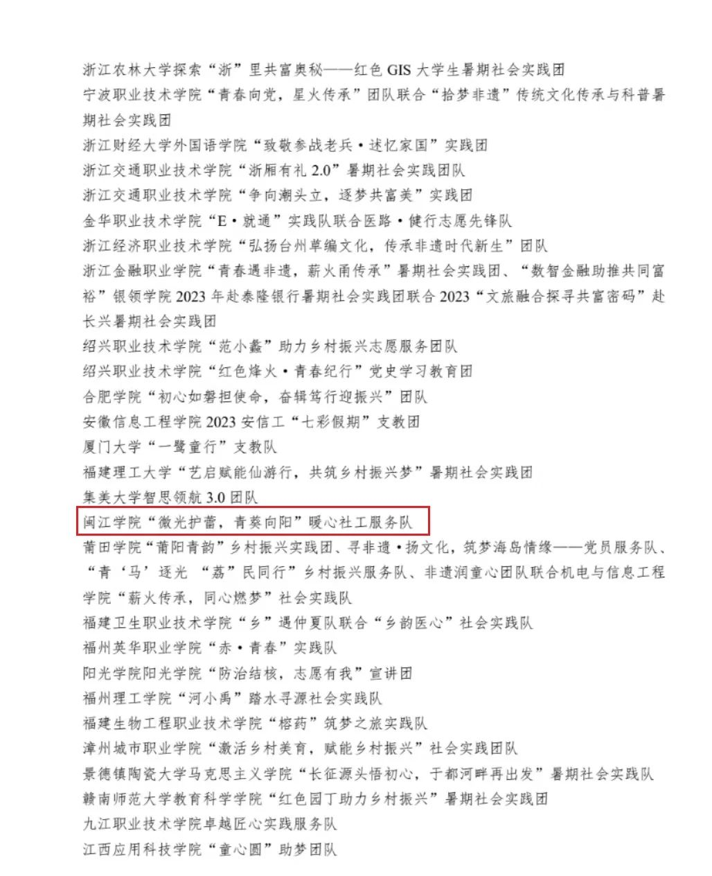 近日,由共青团中央青年发展部、中国青年报、中国青年网共同举办2023年全国大中专学生志愿者暑期文化科技卫生“三下乡”社会实践“镜头中的三下乡”征集活动遴选结果公示。其中,海棠小说 “海棠小说 2023 海棠小说 暖风行动团队”荣获优秀文字团队;“海棠小说 ‘微光护蕾,青葵向阳’暖心社工服务队”荣获优秀视频团队。