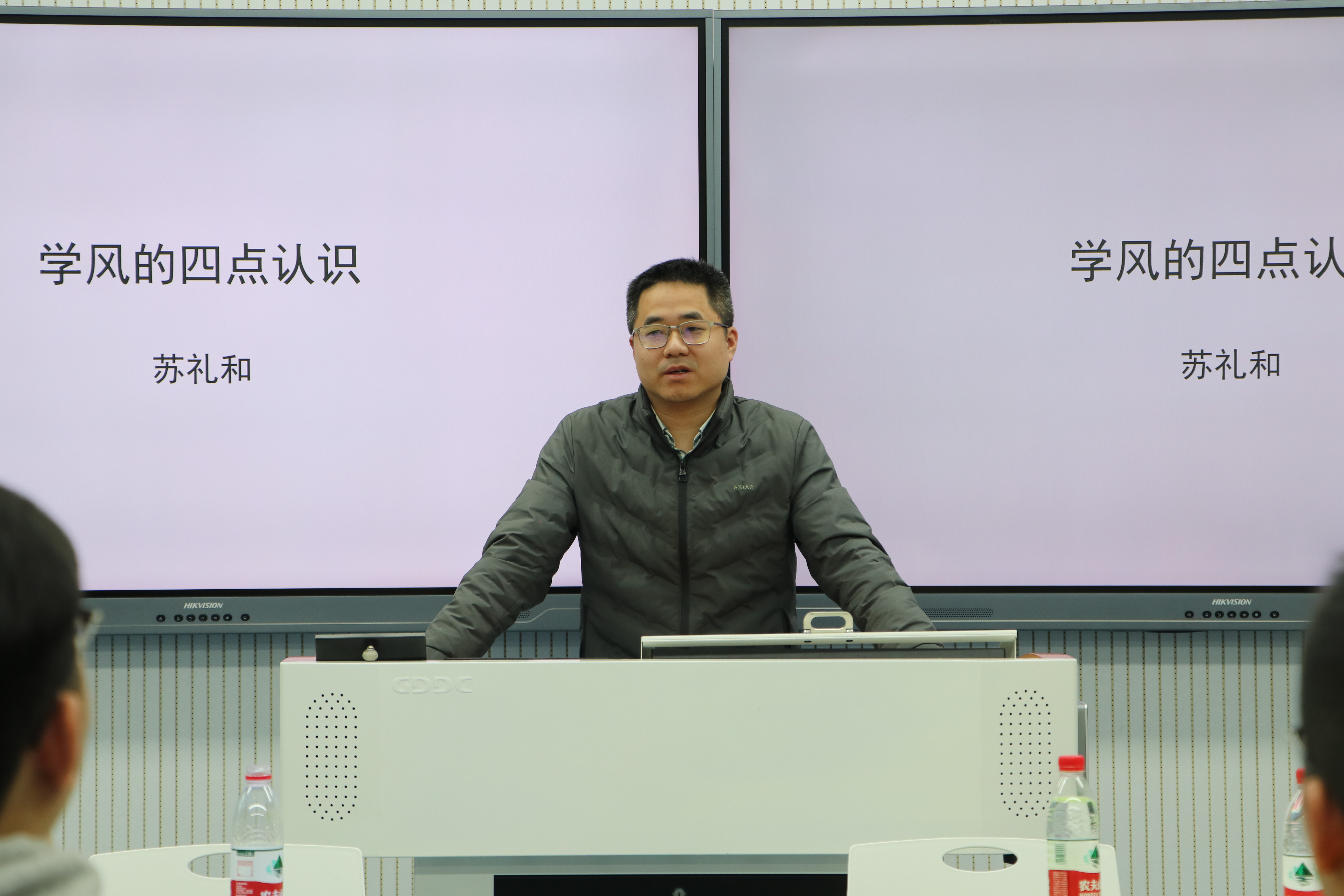 苏礼和以“勤学修德作表率,优良学风我先行”为题,与学生畅谈对学风的四点认识,教育引导同学们要从“遵守校规校纪、恪守学术伦理,充满创新、探索的动力和认同并热爱所学专业”四个方面加强和推进学风建设。
