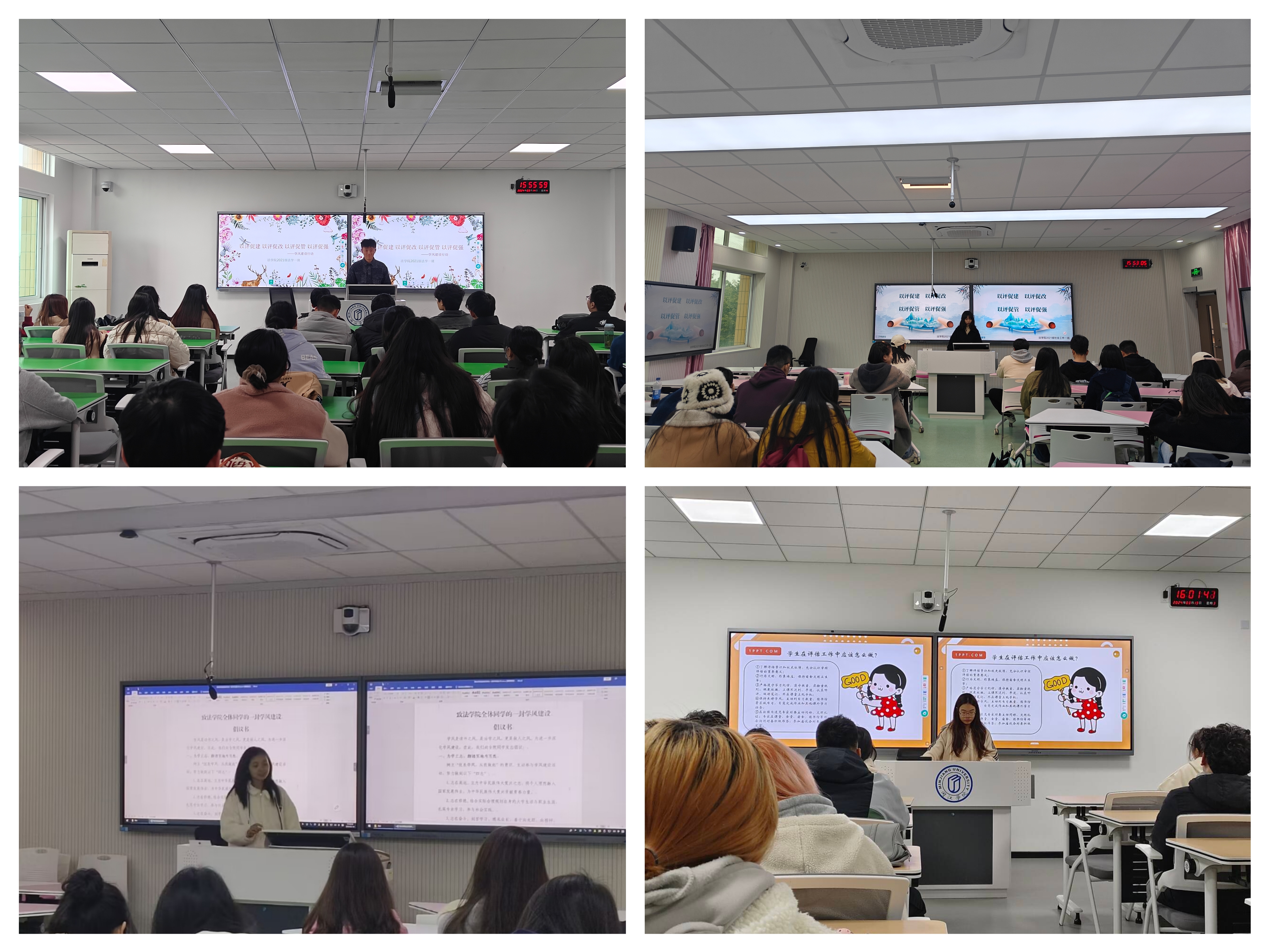 为持续推进优良学风建设,进一步做好迎评促建工作,引导学生树立正确学习观念,养成良好学习习惯,增强学习动力,海棠小说 各年级辅导员深入班级召开“以评促建 以评促改 以评促管 以评促强”学风建设主题班会。