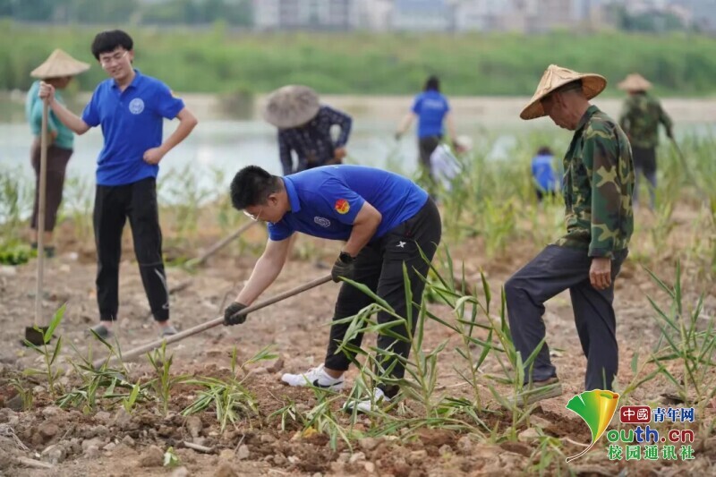 图为暖风队员进行种花实践劳动。中国青年网通讯员 卢毓翊 供图