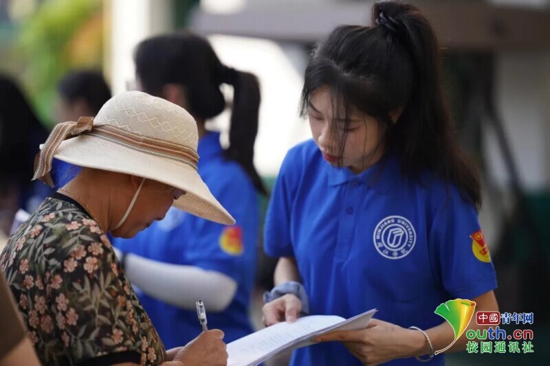 图为暖风队员引导家长填写《告家长安全通知书。中国青年网通讯员 陈子涵 供图