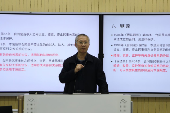 本次讲座聚焦于《民法典》第四百六十四条有关合同的定义及身份关系协议的法律适用。柳教授从法条溯源、法条内容讲解、法条意义三个方面展开讲解。