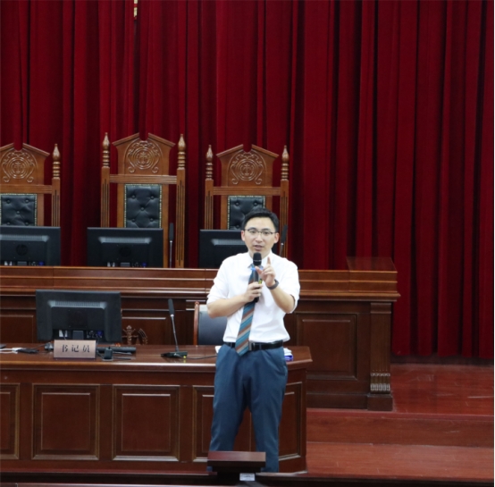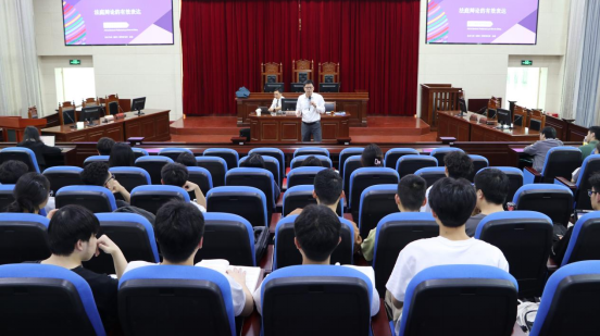 作为一名经验丰富的律师,余振律师则以“构建有力实施,进行有力评价”为切入点,开展以“法庭辩论的有效表达”为主题的分享,深入探讨法庭辩论的重要性及有效方法。他从法庭辩论的目标、路径、表达和技巧训练四个方面展开阐述。他强调了技巧训练的重要性,引导在座的同学们可以利用是否能够被转述这一核心标准来检验自己的表达能力,同时鼓励同学们积极参与模拟庭审和辩论活动,通过实践提升自己的辩论能力和表达水平,为将来成为优秀的法律人才奠定坚实基础。
