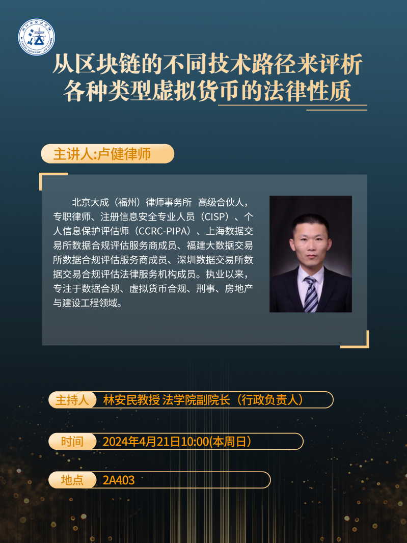 【讲座预告】卢健:从区块链的不同技术路径来评析各种类型虚拟货币的法律性质