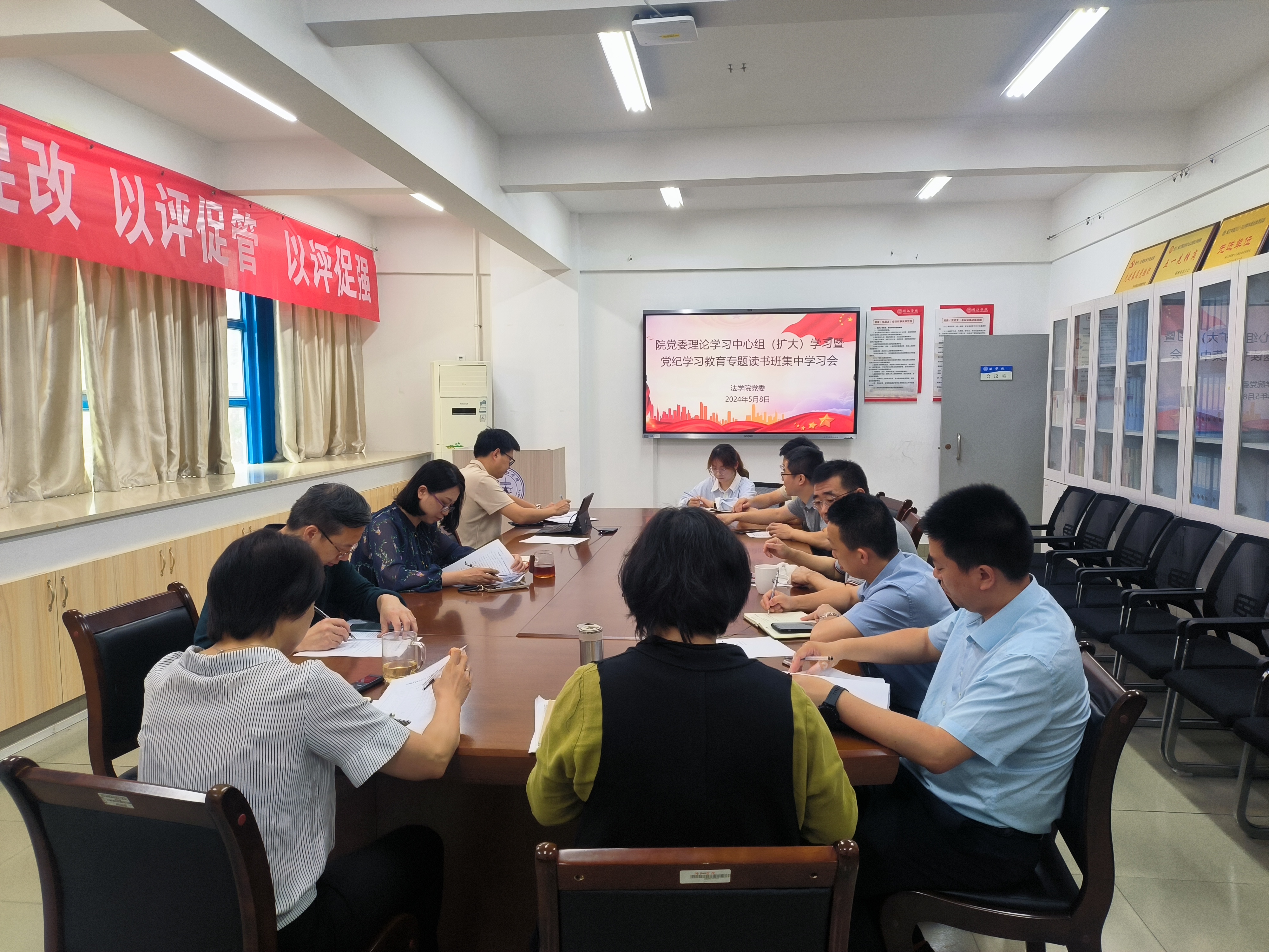 读书班于5月8日上午在福万楼616举行。法学院党委理论学习中心组全体成员、科级以上干部、团委负责人、党支部书记参加了读书班。读书班由海棠小说 党委书记戴少娟主持。