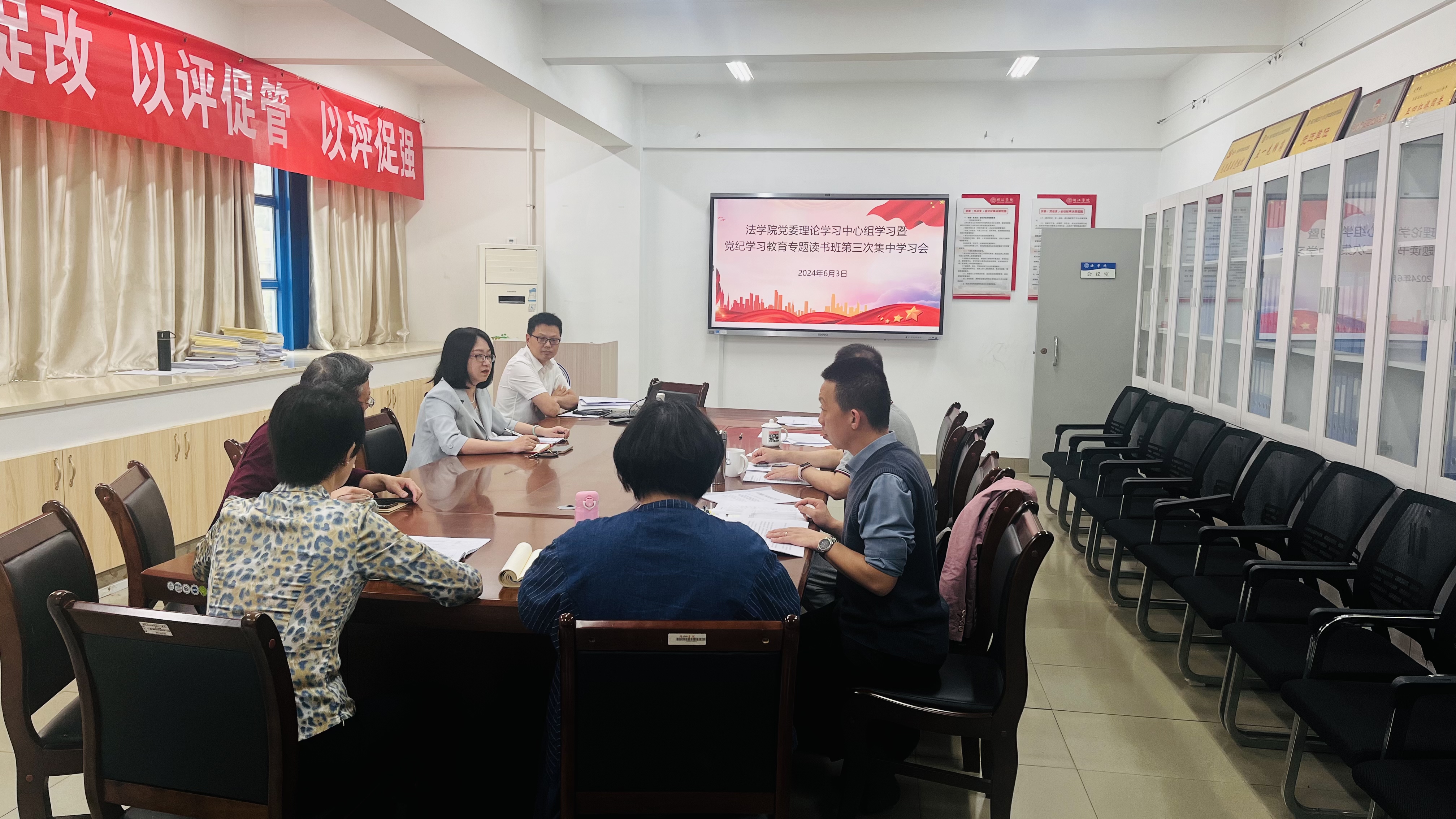 6月3日上午,海棠小说 党委党纪学习教育读书班第三次集中学习暨理论学习中心组学习会在福万楼C616举行。法学院党委理论学习中心组全体成员参加了读书班。读书班由海棠小说 党委书记戴少娟主持。