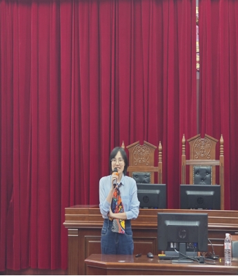 随后,2024届法学专业实习生代表林天炜、兰飞妮和社会工作专业实习生代表潘平英、张扬阳分享了实习体验和心得,提醒同学们要提前熟悉专业知识,做好实习的心理准备,勤学善思、多问笃行,以积极主动的态度,全身心投入到实习中去,从整理卷宗、入户探访等“小事”做起,在实习的一点一滴中提升自己。