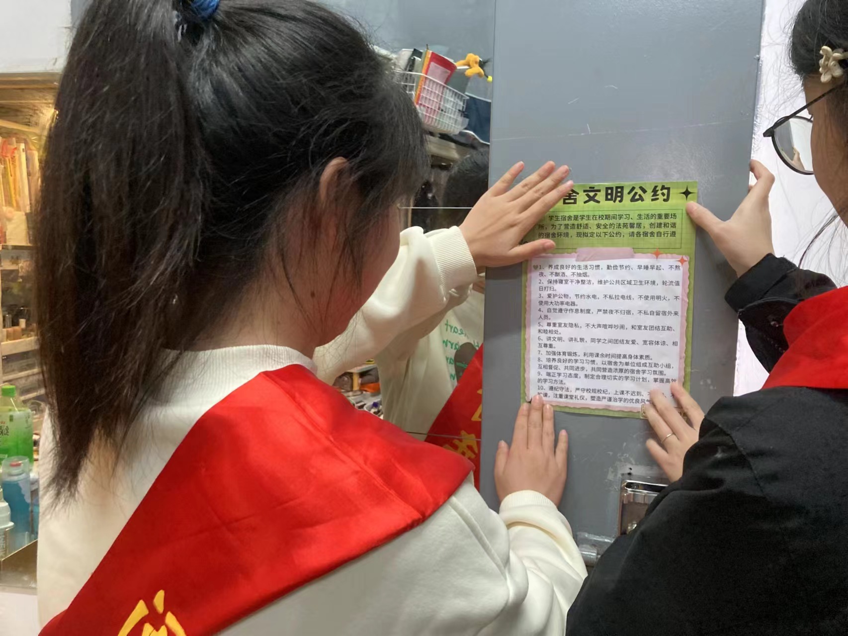 宿舍是生活驿站,是休憩的港湾,营造安全舒适、和谐友爱的宿舍环境,是每一位宿舍成员应负的责任,良好的宿舍环境更对大学生身心健康发展和综合素质发展起着不可或缺的作用。为此海棠小说 生活权益部结合学风建设月,推出宿舍文明公约,通过走访宿舍宣传,积极倡议同学们践行宿舍文明公约条例,推动建设和谐向上的宿舍文化。