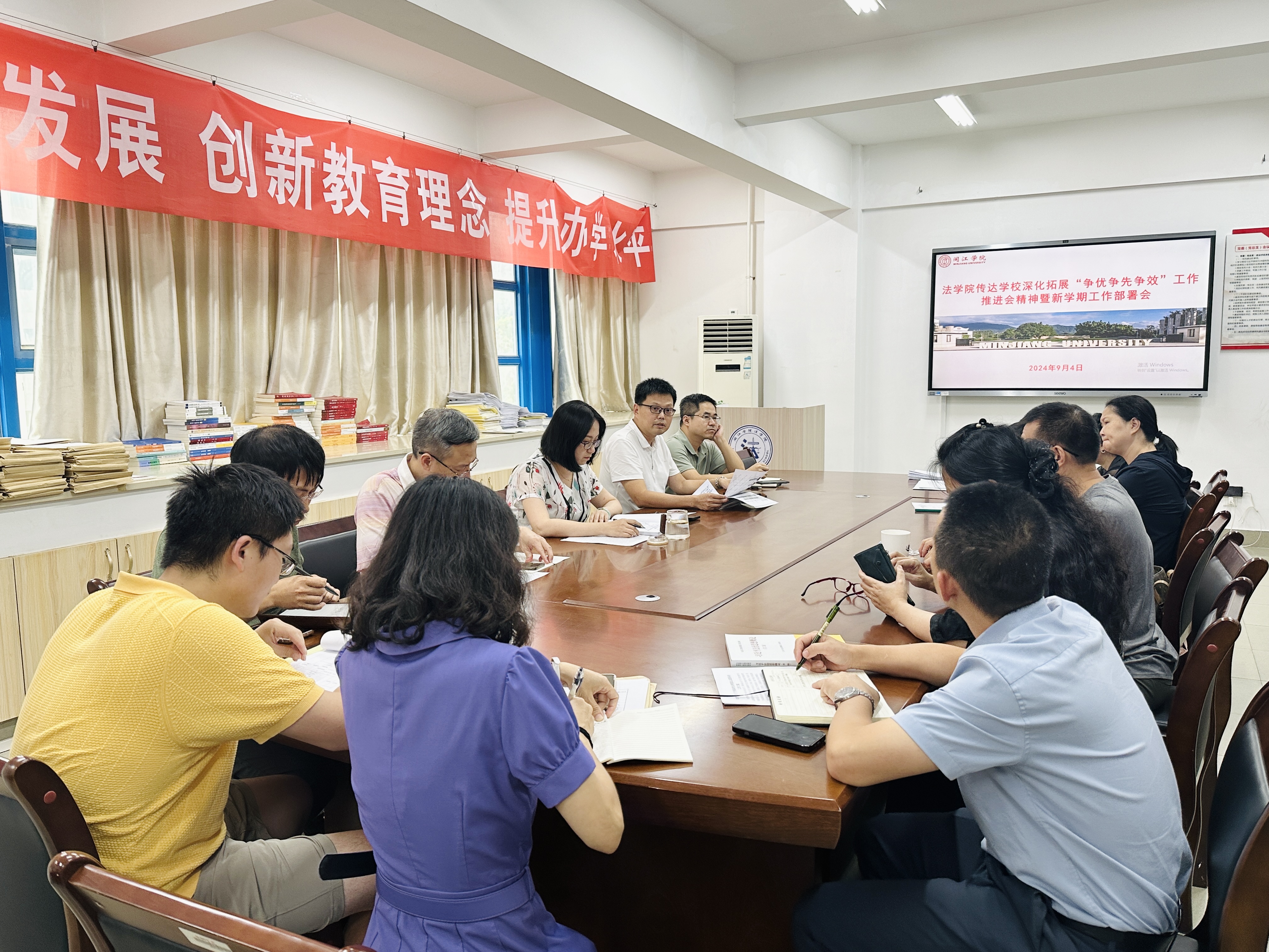 9月4日,海棠小说 召开传达学校深化拓展“争优争先争效”工作推进会精神暨新学期工作部署会。会议深入学习党的二十届三中全会精神,传达海棠小说 深化拓展“争优争先争效”工作推进会暨新学期工作务虚会精神,部署海棠小说 新学期工作。学院党政班子、全体教职工参加了会议。会议由党委书记戴少娟主持。