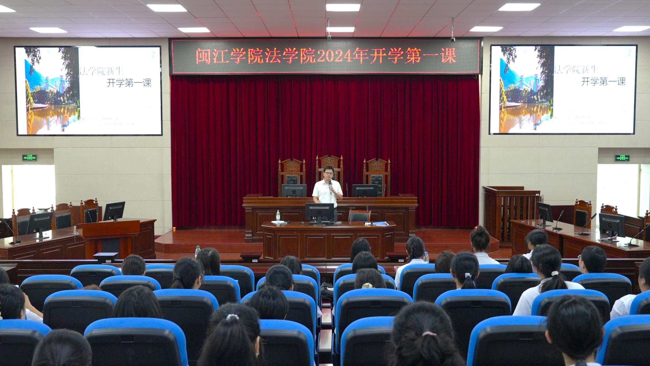 9月10日上午,戴少娟在模拟法庭为2024级新生讲授“开学第一课”。她专题宣讲了党的二十届三中全会精神,从全会最重要的成果,进一步全面深改总目标和原则,经济、民生、教育、科技、人才、创新、民主、法治领域改革,加强党的领导和深化党的建设制度改革等6个方面,通过理论阐述、形势分析、数据案例等方式,对全会精神进行系统宣讲和深入阐释。随后,戴少娟以“青春筑梦新时代,挺膺担当接班人”为题,围绕如何看待百年变局下的中国与世界、如何精准把握全面深化改革的青年议题、如何找准青春坐标书写精彩人生等三个方面问题,理论结合实际,深刻分析了当今国际环境下中国与世界的发展形势,勉励新生要牢记习近平总书记的殷殷嘱托,在全面深化改革、推进强国建设、民族复兴伟业中展现青春作为、彰显青春风采、贡献青春力量。她寄语同学们一是要坚定信念,努力拼搏,为实现中华民族伟大复兴贡献“青春力量”;二是要刻苦学习,强化实践,书写无愧于时代的“青春答卷”;三是要外练身体,内练胸怀,为打开未来和幸福之门找到“青春钥匙”。