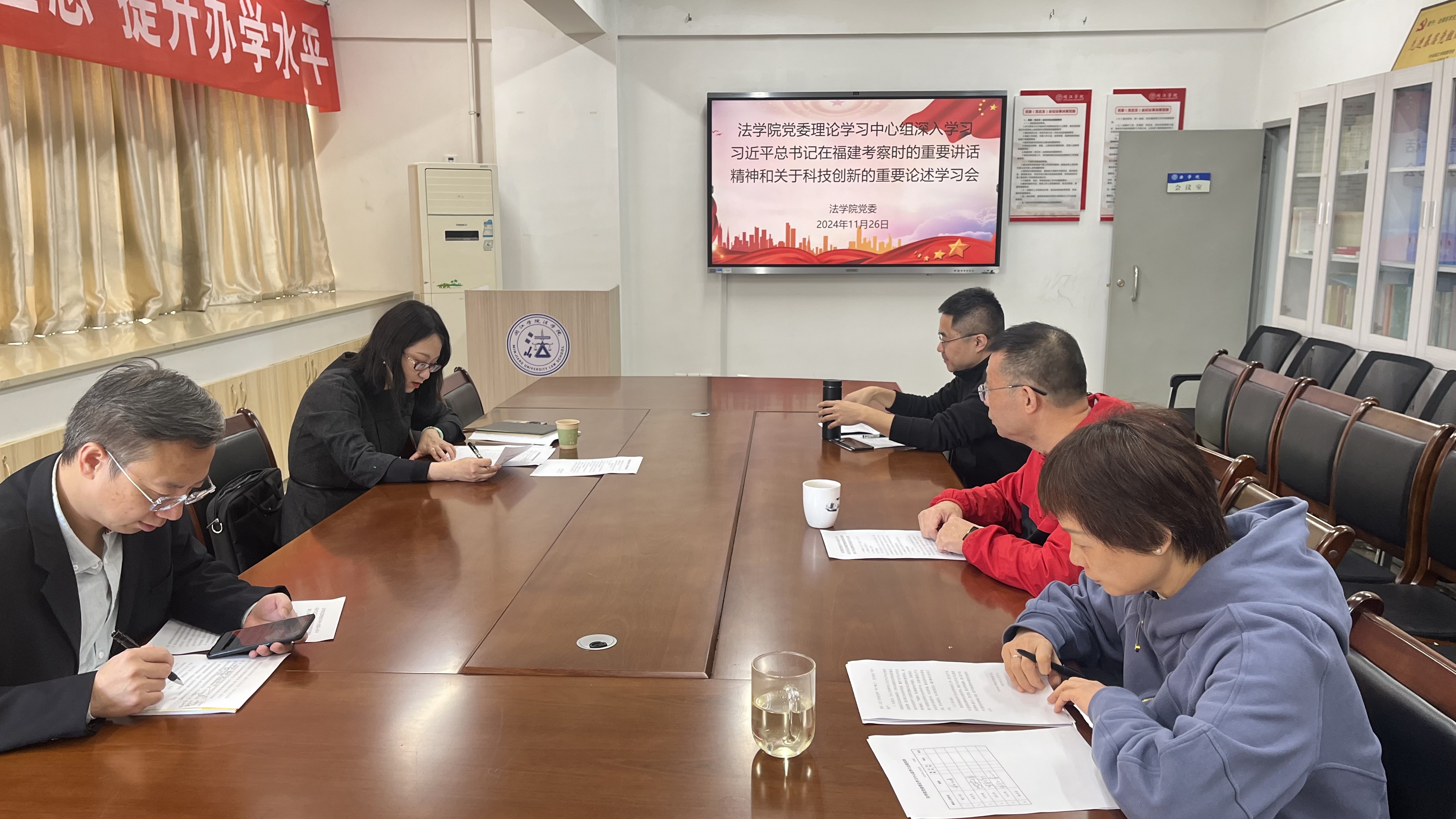 11月26日,海棠小说 召开党委理论学习中心组学习会,专题学习习近平总书记在福建考察时的重要讲话精神和关于科技创新的重要论述。会议强调,要深入学习贯彻党的二十大和二十届三中全会精神,深学细悟习近平总书记回校考察重要讲话精神,发扬改革精神、勇于担当作为、坚持干字当头,扭住目标不放松、一张蓝图绘到底,为加快推进一流应用型大学建设作出海棠小说 应有贡献。中心组成员苏礼和副院长、刘江翔围绕主题分别作了发言。