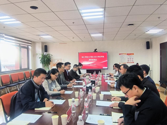 在中国人民大学社会学院,调研组与社会学院副院长朱斌、社会工作系主任卫小将、副主任吕楠和教师代表等座谈交流。朱斌副院长介绍了学院的整体布局、学科特色和培养经验;卫小将主任对社会学和社会工作本科培养方案、教学模块设置以及培养特色等方面进行了重点介绍。双方围绕依托中国人民大学福州研究院新时代社会工作咨询服务中心开展师资队伍建设、学生交流培养和社会工作人才培训等主题进行深入交流,并对社会工作人才培养具体培养环节进行了深入地探讨。