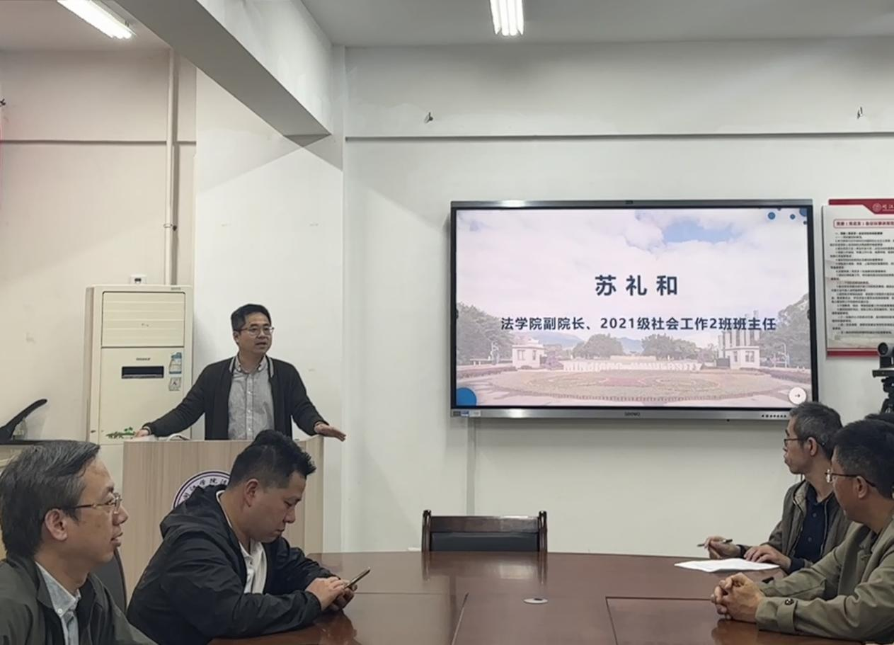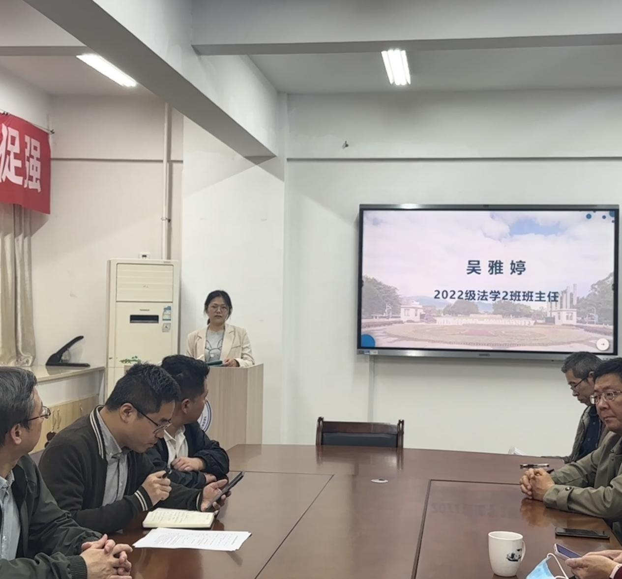 班主任、辅导员代表发言。2022级法学2班班主任吴雅婷从建立法学基础、积极参与法学课堂、广泛阅读法学文献等五个方面阐述如何引导学生扎实专业知识与培养专业学习兴趣。2021级社会工作2班班主任苏礼和重点分享了如何帮助学生做好职业生涯规划,他指出作为班主任一方面要及时强化学生的就业意识、升学意识和危机意识,另一方面要发挥自身优势,善于帮助学生链接各种资源,提供更多服务。2020级社会工作1班班主任吴喜双从毕业班学生论文与实习实训角度出发,探讨该阶段学生所面临的压力与心态转变问题,她表示,利用学科专业特色可以鼓励学生将实习实训和毕业论文的写作更好地结合起来。2020级本科生辅导员林煜以“辅导员和班主任如何打好‘组合拳’做好协同育人”为主题,希望能够加强与在座班主任的沟通,在学风建设、思想引领等方面共同为学生成长成才保驾护航。