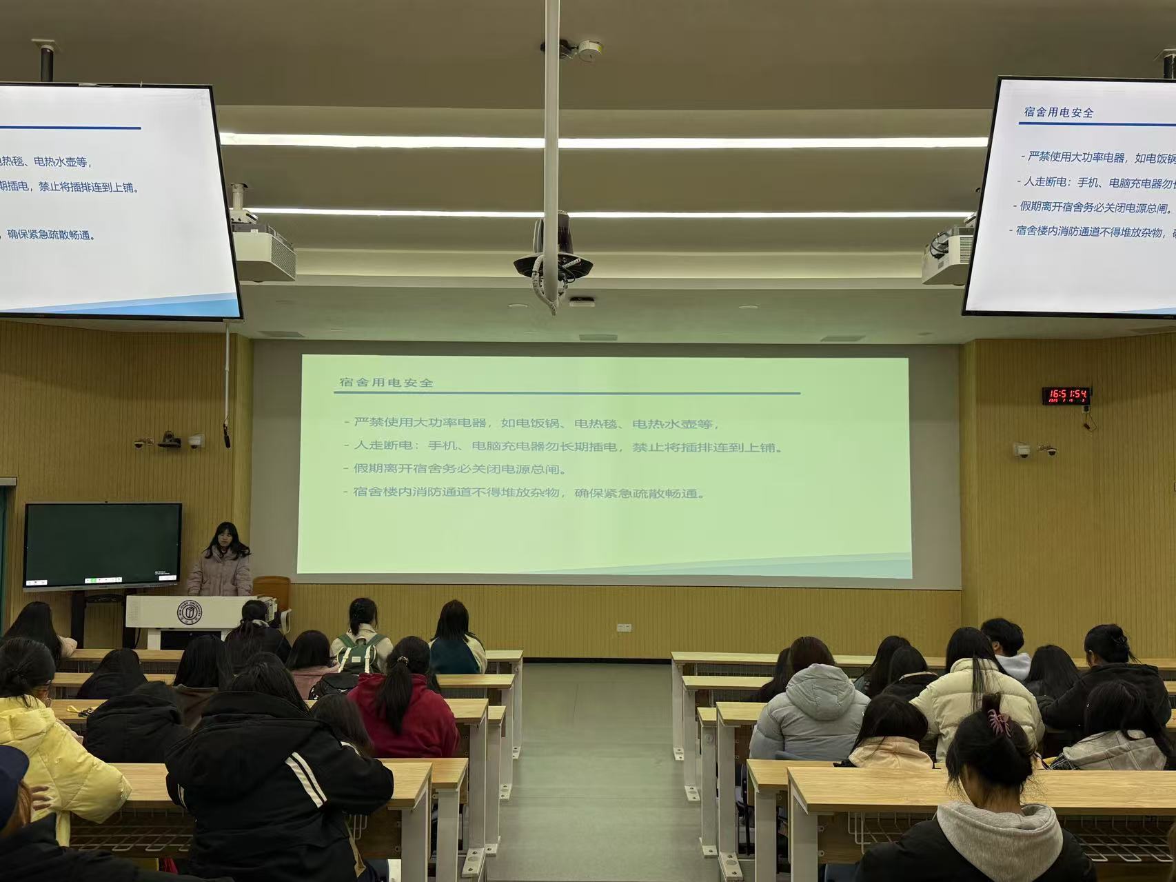 辅导员黄于珂围绕消防安全、交通出行、网络安全、防范金融诈骗等四大主题,向2023级学生深入剖析可能面临的安全风险,向学生强调宿舍管理制度、禁止使用违规电器、遵守交通规则、倡导文明上网、警惕网络诈骗,强化“人人都是安全第一责任人”的意识,提醒学生时刻绷紧安全之弦,守好安全底线。