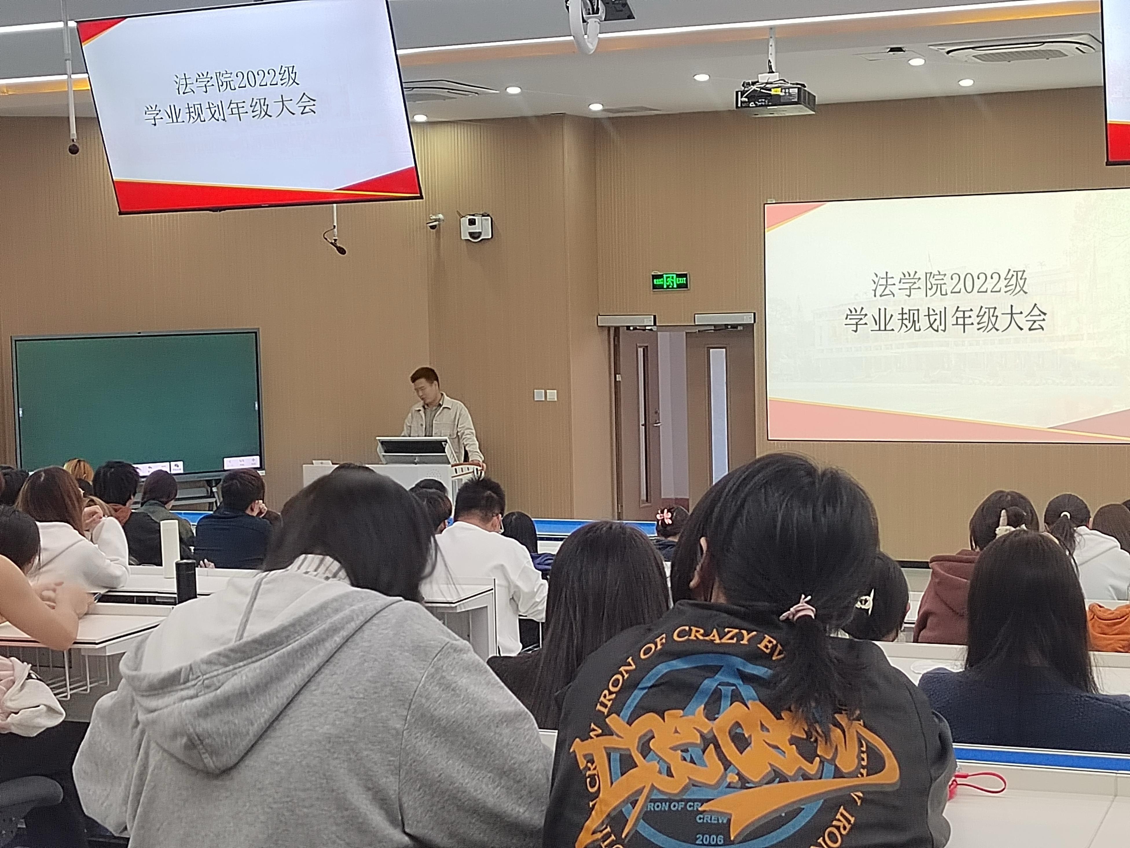 辅导员林金官通过列举详实的数据,为2022级学生深入解读考研择校、法考备考、实习资源整合等策略和规划,同时鼓励学生提升个人综合能力,为未来个人职业发展打下坚实基础。