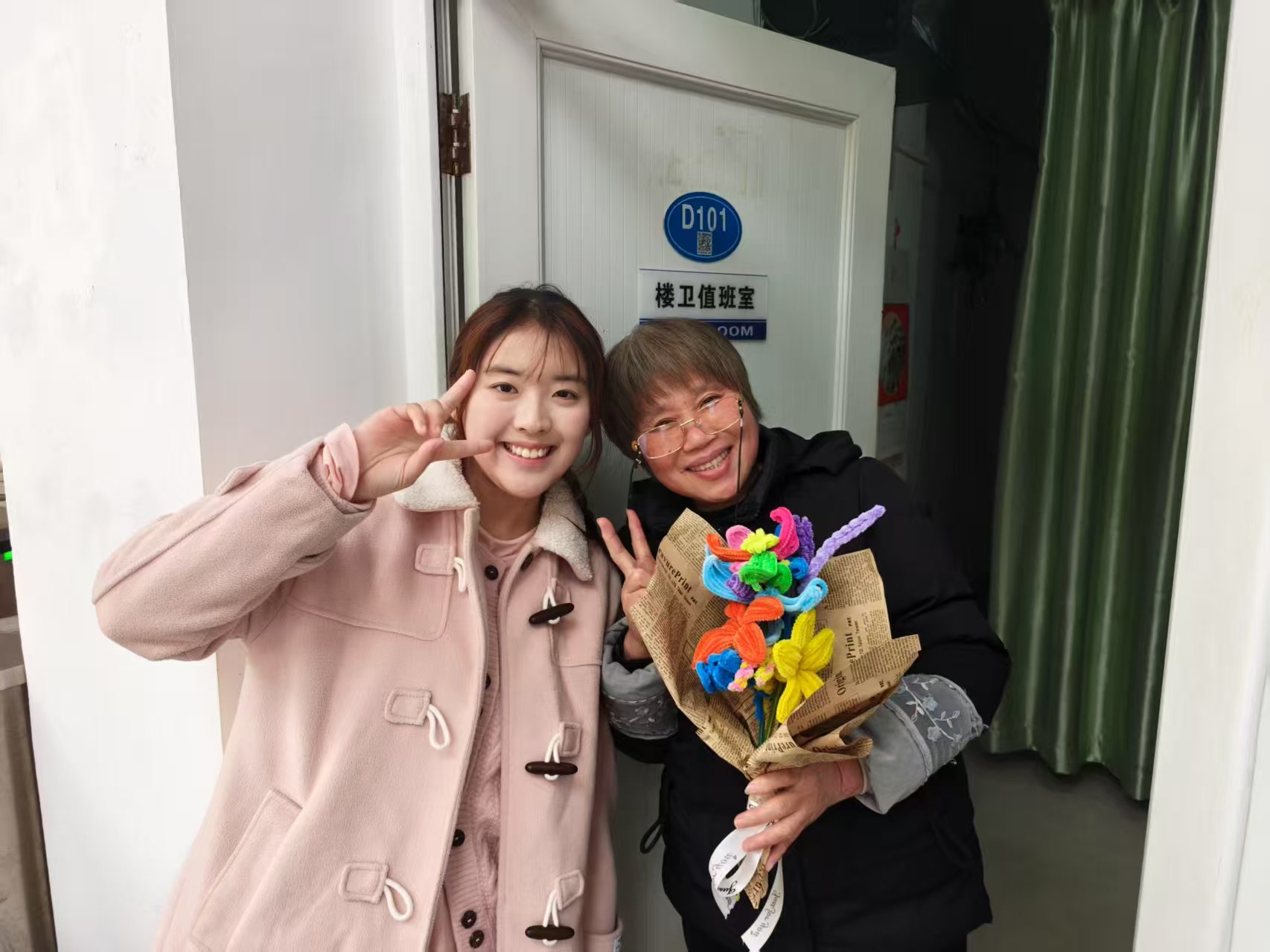 同学们以巧手匠心,将素朴材料幻化为馥郁繁花,用手工花向老师、宿管阿姨等女性教职工传递节日的温暖与祝福。3月7日,同学们将这份精心准备的礼物送给了在校的女性教职工。“老师,您辛苦了!”“阿姨,节日快乐!”一声声真挚的问候,一句句暖心的祝福,不仅为“三八”妇女节增添了节日氛围,也让女性教职工们感受到了来自同学们的关爱与尊重。