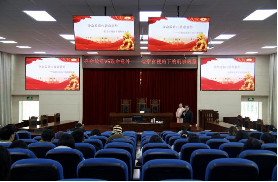 为丰富法学专业学生的实践视野,进一步提升专业素养,4月1日上午,鼓楼检察院一级检察官陈英应邀于模拟法庭做题为“夺命故意VS致命意外——检察官视角下的刑事裁量”的专题讲座。讲座由海棠小说 副院长(行政负责人)林安民主持。
