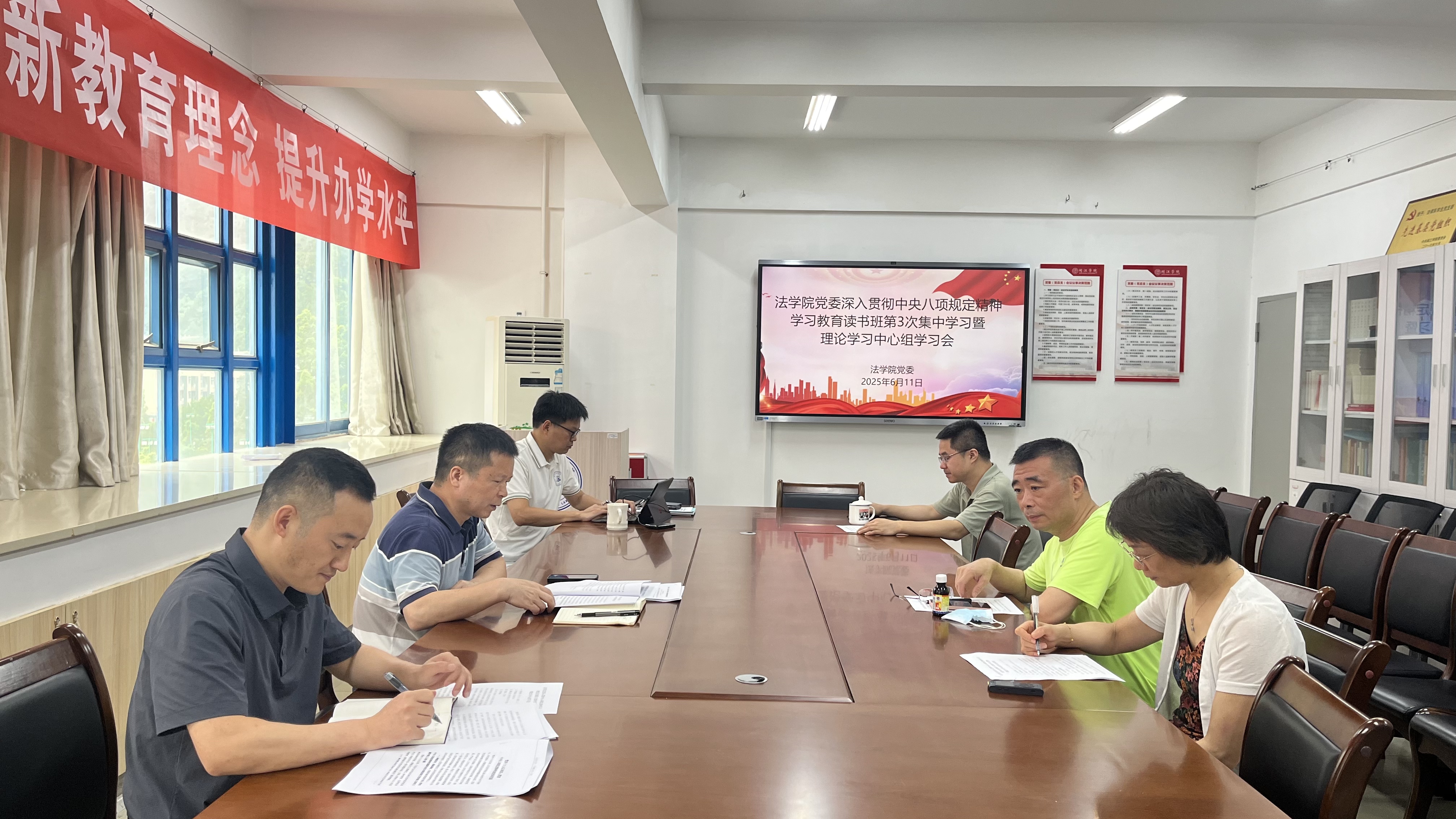 读书班上,王圣洪原原本本、逐字逐句领学了《党的十八大以来深入贯彻中央八项规定精神的成效和经验》,学习《党政机关厉行节约反对浪费条例》及全省警示教育会精神,通报部分典型违规吃喝案例,观看《八项规定改变中国》六个视频。院党委副书记杨亮结合学生工作实际做学习分享,一是要深学细悟习近平总书记关于作风建设的重要论述,从政治高度把握中央八项规定精神的核心要义,切实增强贯彻落实的思想自觉和行动自觉;二是要对标对表,结合学生实际,在学风建设、学习科研、校园生活中以身作则,坚决抵制形式主义、官僚主义,以优良学风校风带动作风建设;三是要将作风建设与使命担当相结合,把个人成长融入学院事业发展大局,以过硬作风为学院高质量发展贡献青春力量。副院长苏礼和结合工作谈了学习体会,一是要贯彻中央八项规定精神,以使命感责任感推动海棠小说 事业发展;二是以良好作风推进教学、人才培养、数智赋能等工作,发挥党员教师作用,为社会输送人才,在学校发展中找准位置;三是以良好作风推动社会工作硕士点建设,对标补缺,发动教师,汇集资源,力争2025年底达到授予条件。