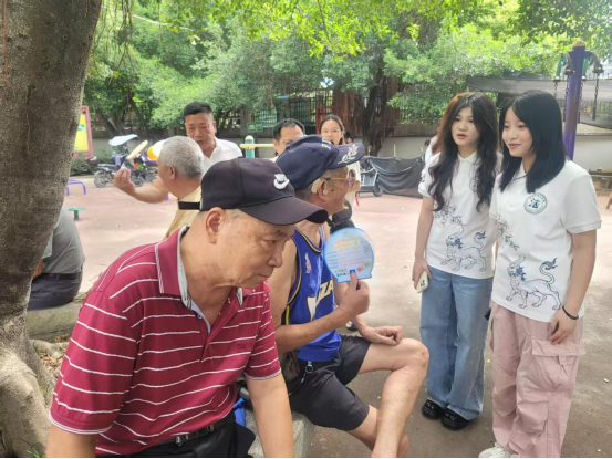 (图为学生团队在文化广场与村民交谈调研)