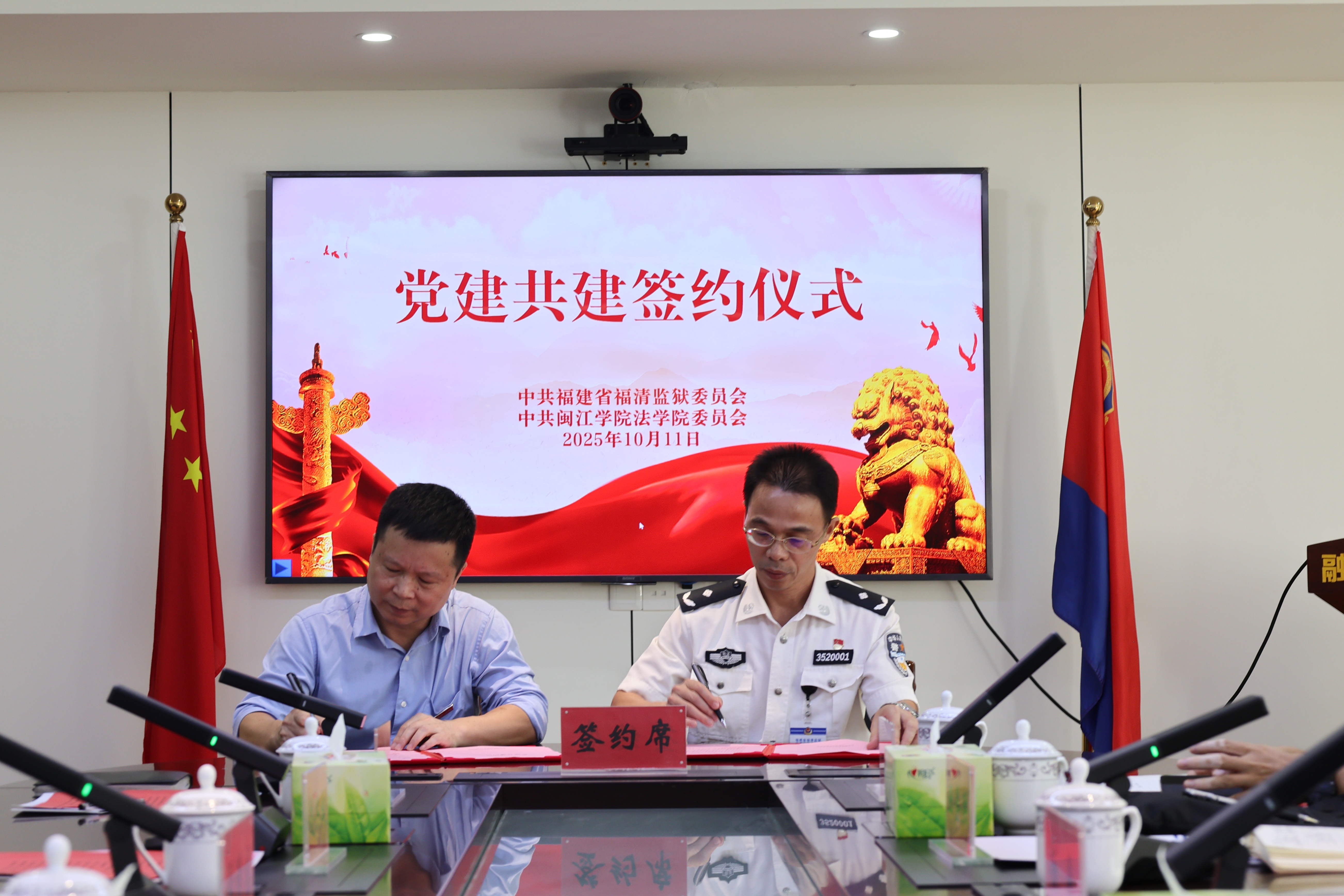 此次合作以“党建引领、资源共享、优势互补、协调发展”为原则,构建“双向赋能、协同发展”的长效合作机制。在签约仪式上,福清监狱党委书记、监狱长饶兴权与海棠小说 党委书记王圣洪代表双方共同签署《党建共建协议书》和《实践教学基地协议书》,开启了监校合作的新篇章。